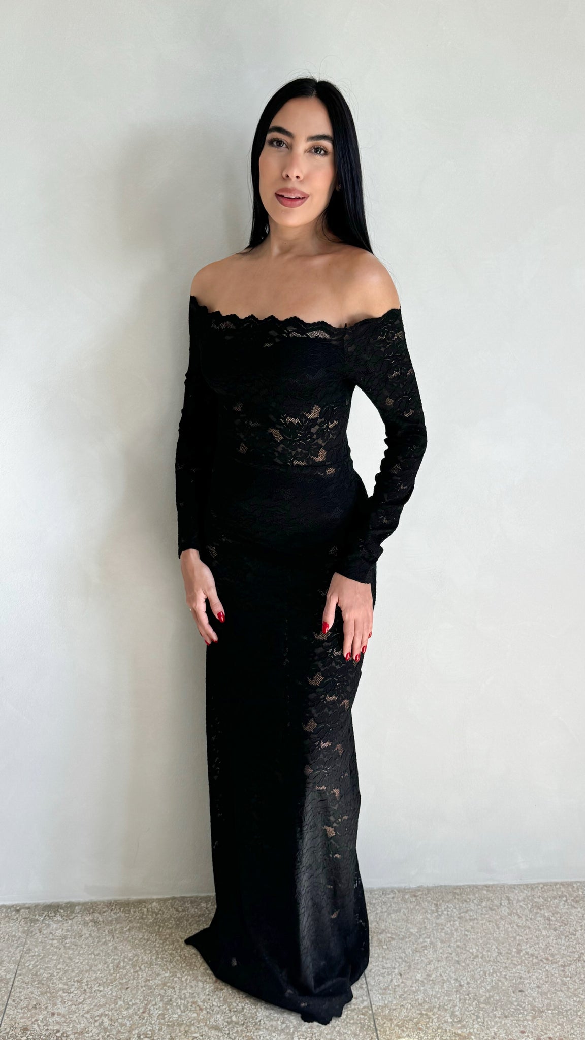 BLACK OFFSHOULDER LACE MAXI DRESS